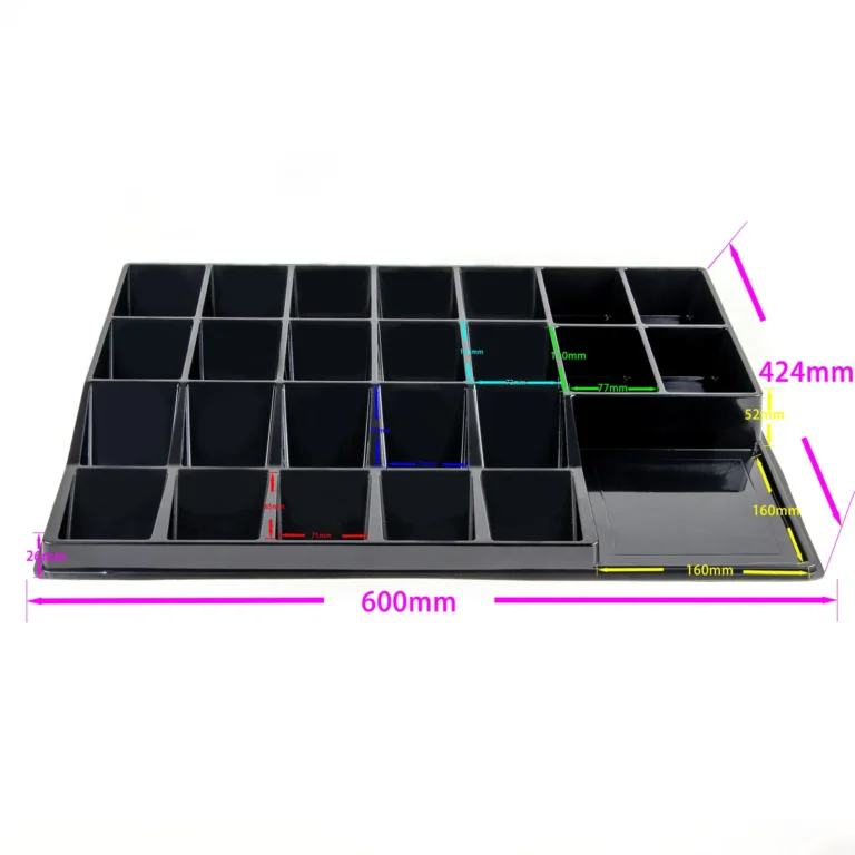 • Light-weight, vacuum formed tray for sorting and organizing trading cards.