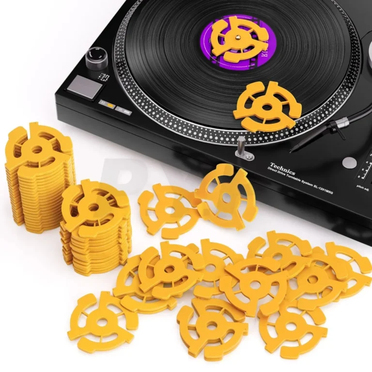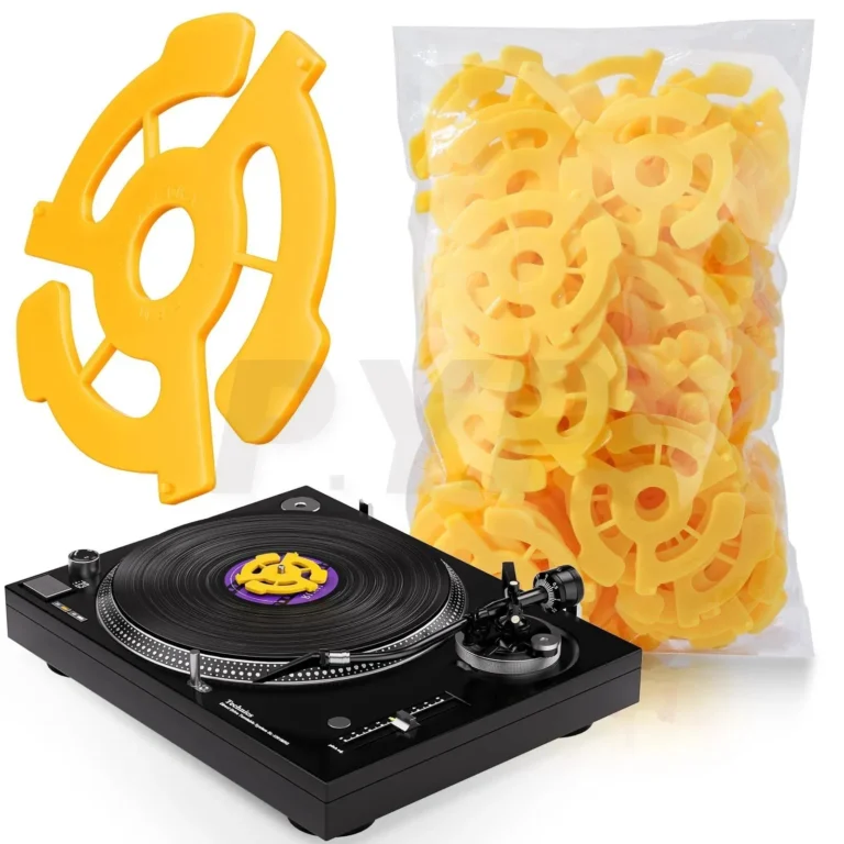 The 45 RPM record insert is made of high-quality plastic, which is stable and durable. It not only increases the between the record and record, but also improves the sound quality while reducing resonance and vibration.