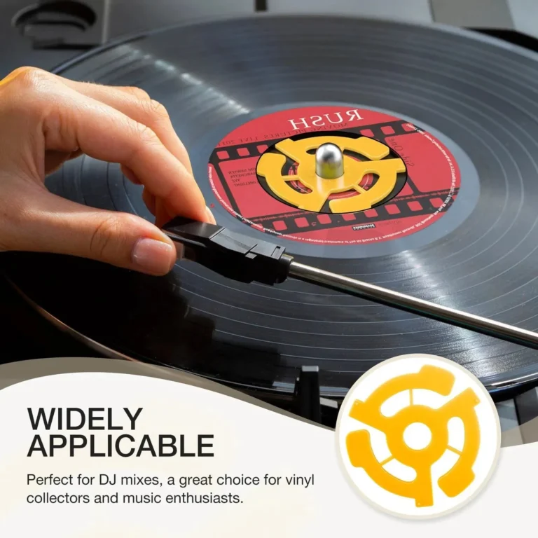 To use, simply snap the adapter into the center of the 7-inch record and place it onto the turntable spindle.