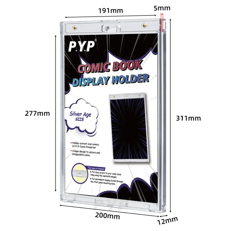 - Slide-in hinge and dual magnetic closure keeps your comic secure