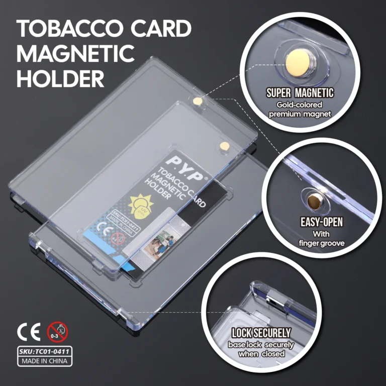 Sized to fit Tobacco card size cards (1.5″ x 2.7″) up to 35pt in thickness.