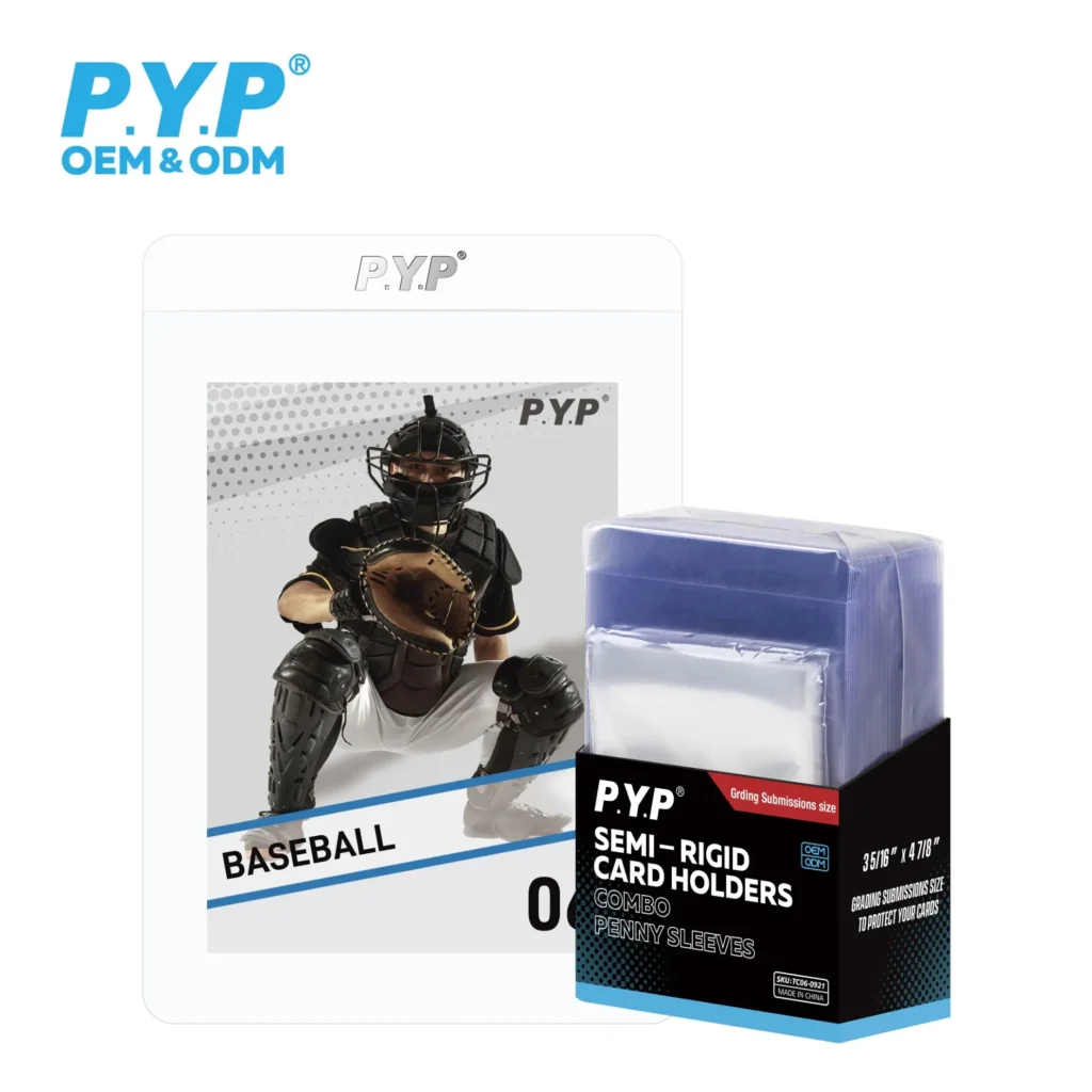 Home Semi Rigid Card Holder with 50 Penny Sleeves Product Quality Inspection Specification Brand:P.Y.P Material: PVC Exterior: 84x123mm(3¼x5 inch) Weight: 400g/PC Thichness: Thich Package: 50 Pack SKU: TC06-0901 3×4 Size Graded Size Tall Card Size 4×6 Size Download Catalog Request a Quote About this item Semi-Rigid tall sleeves are the ideal protection choice for graded […]